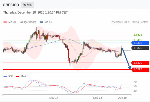 在 1.3395 之下,看跌,目标价位为 1.3320 ,然后为 1.3295 。