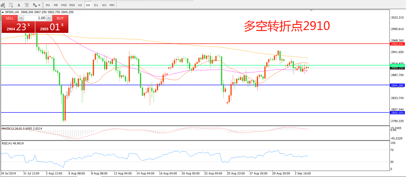 周二(9月3日),美国最新公布的经济数据表现异常疲弱,美国8月ISM制造业采购经理人指数报49.1,大幅不及市场预期,2016年8月以来首次跌破荣枯线。全球贸易形势及经济数据不佳打压投资者情绪。美国三大股指全线低开,标普500呈现窄幅震荡态势,最终收报2906.50点。