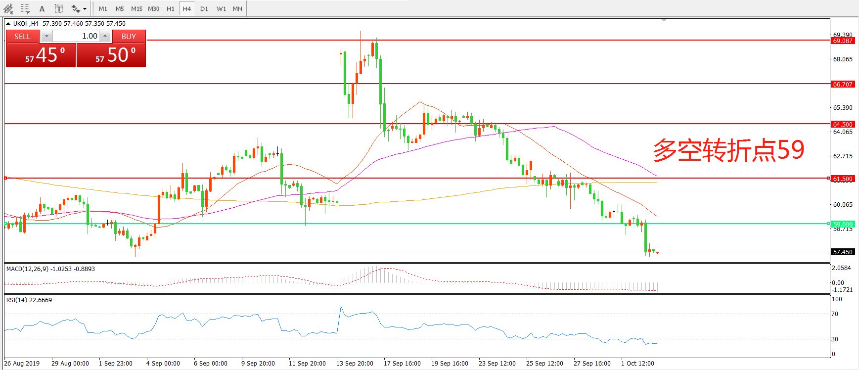 交易策略:在59.00之下看跌,目标57.00    55.00