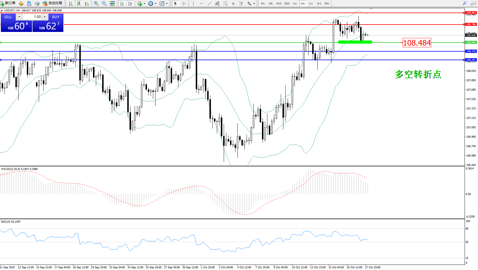 交易策略:108.484上方看涨,目标108.786、108.983