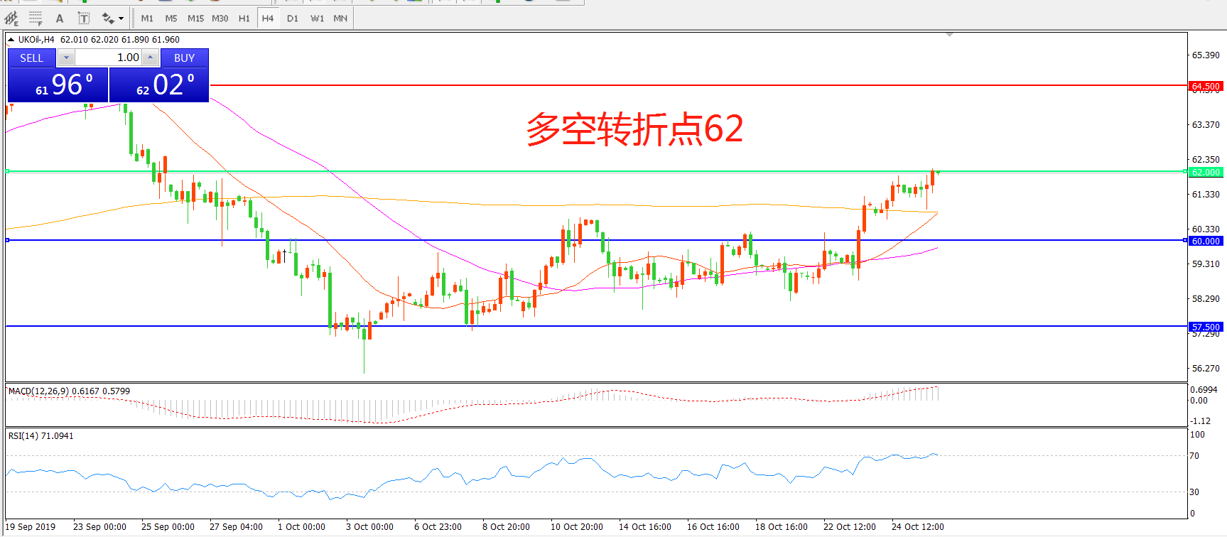 交易策略:在62.00之上看涨,目标64.50      68.00