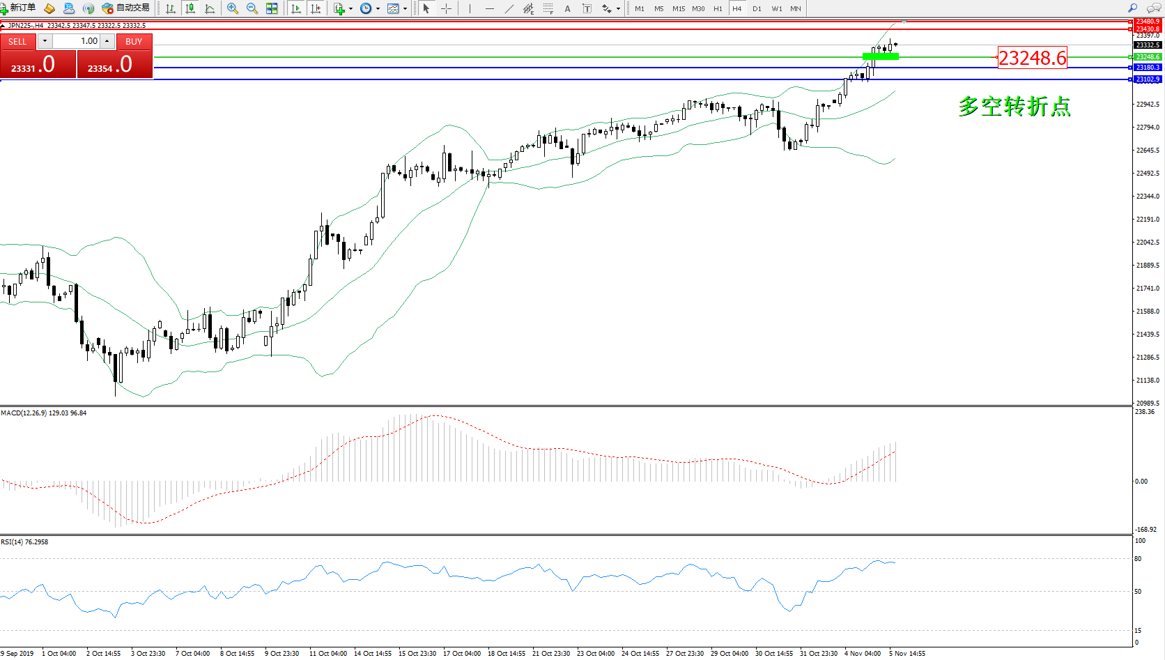 日经225指数11月5日(周二)收盘上涨430.73点,涨幅1.88%,报23281.50点。全球股票资产纷纷走高,日本央行行长黑田东彦表示日本央行将坚持继续宽松。日本央行副行长雨宫正佳也表示不考虑紧缩政策,未来的方向将是保持当前的刺激措施或进一步的宽松。日本央行可以降息、加大资产购买力度以及加快货币基础扩张步伐,日本央行将继续在不先入为主的前提下制定政策,新指引显示日本央行倾向于通过利率来放宽政策,需要关注物价动能面临的风险。