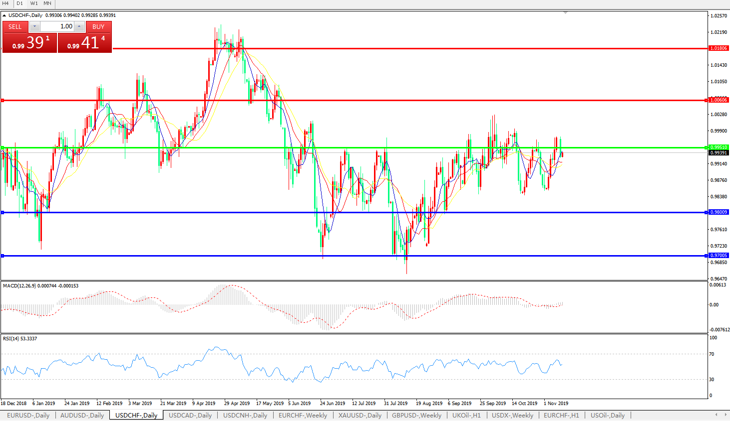 交易策略:0.9950下方看跌,目标0.98000.9700