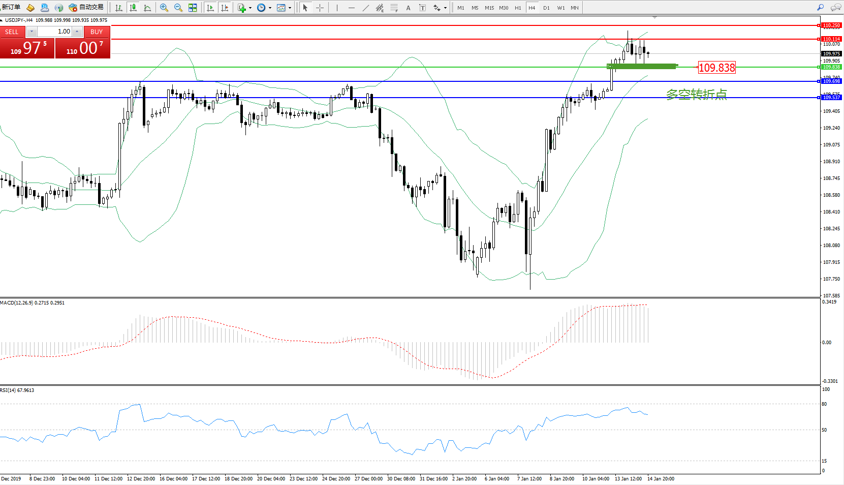 美元兑日元涨0.04%109.99,此前升至110.21,为523日以来最高。关税消息推动美元兑日元从近七个月高位回落。近日全球风险情绪不断转好,在中东地缘风险消退的同时,中美一阶段贸易协议签署在即,而日内发布的中国12月贸易账数据也进一步向好,这都令市场资金从避险资金市场抽离进入高收益资产领域。并且,美国方面承认不把中国列入货币汇率操纵国名单,这对年内剩余时间双边经贸合作前景是更大利好,这对避险资产构成进一步打压。