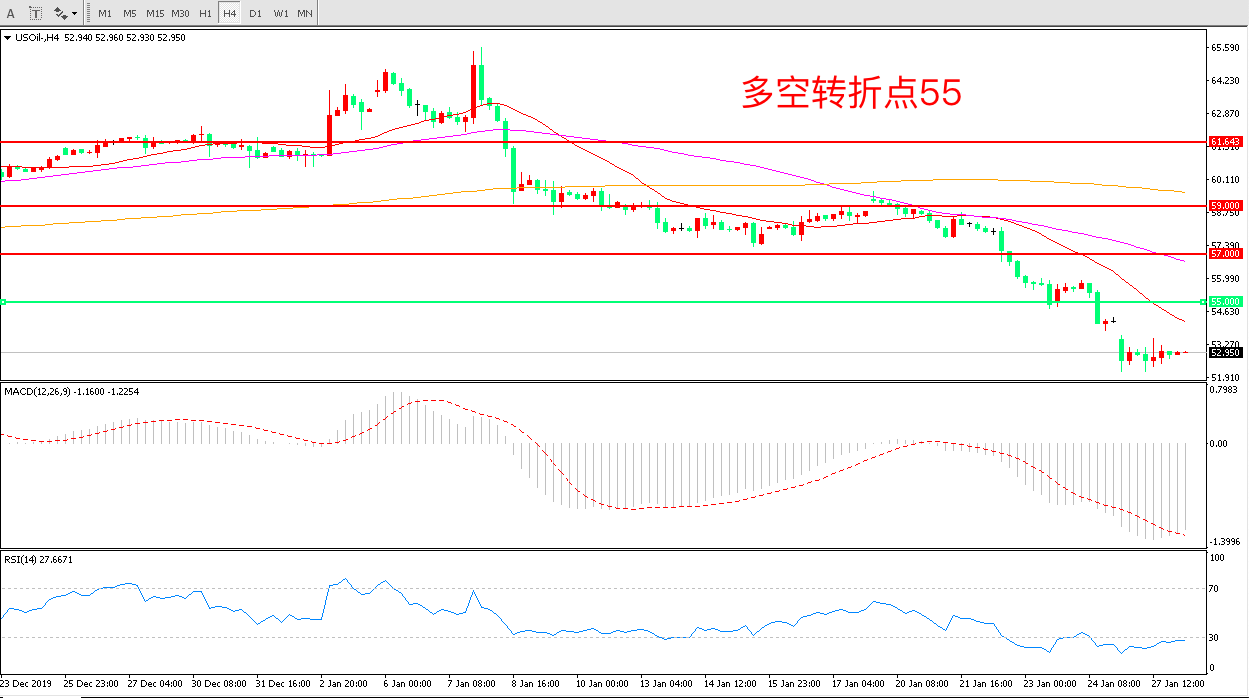 交易策略:在55.00之下看跌,目标52.00         49.50