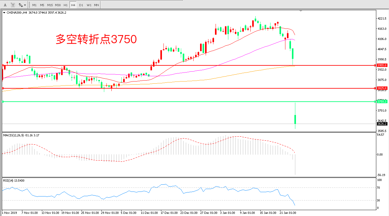 交易策略:3750.00之下看跌,目标3630.00     3580.00