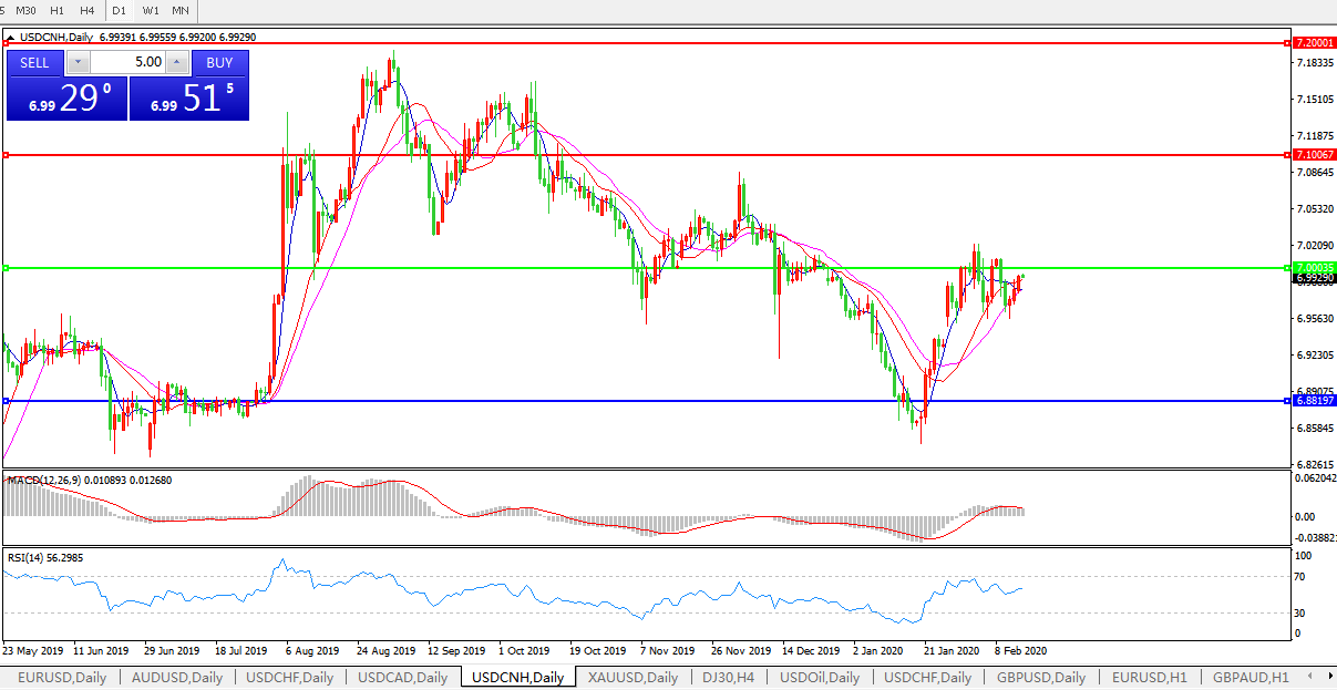 技术面简析:日图均线整体呈多头排列但短期均线下行态势明显,汇价跌破7.0关口后维持震荡整理格局,MACD运行于0轴上方但量能开始萎缩,RSI再度震荡走弱,预计汇价短期将进一步走低。