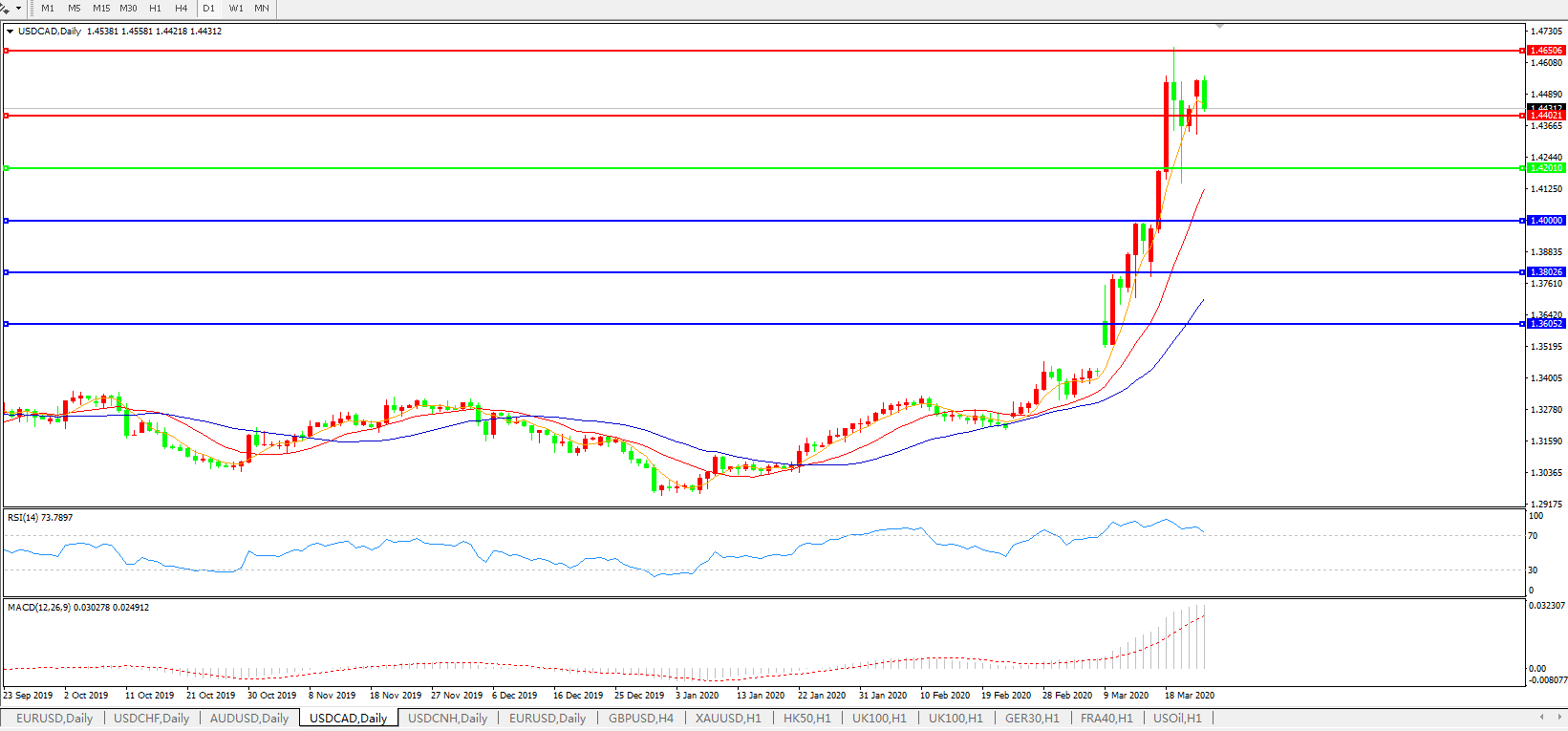 美元兑加元USDCAD 日线图: