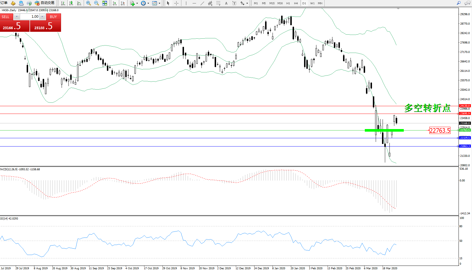 香港恒生指数326日(周四)收盘下跌174.85点,跌幅0.74%,报23352.34点,港股市场未能持续走强,主要股指盘中皆跌超1%。继连续反弹后,市场做多动力衰退,观望情绪明显增强。海外疫情仍旧严峻,目前多国纷纷出台政策,短期国际金融市场或结束急跌处于震荡行情。主板成交量为1217.79亿港元,港股通净流入36.18亿港元。亚太股市收盘涨跌互现,欧洲主要股指低开,恒指承接过去两天升势高开77点报23604点已为全日最高位,在银行股走弱下恒指调头向下,最多跌363点见23163点。及后美国参议院全票通过刺激经济议案,将提交众议院表决,港股一度反弹转升,美国股市再度上涨,因投资者推测国会即将通过的2万亿美元救助计划将缓和冠状病毒大流行对经济的冲击。