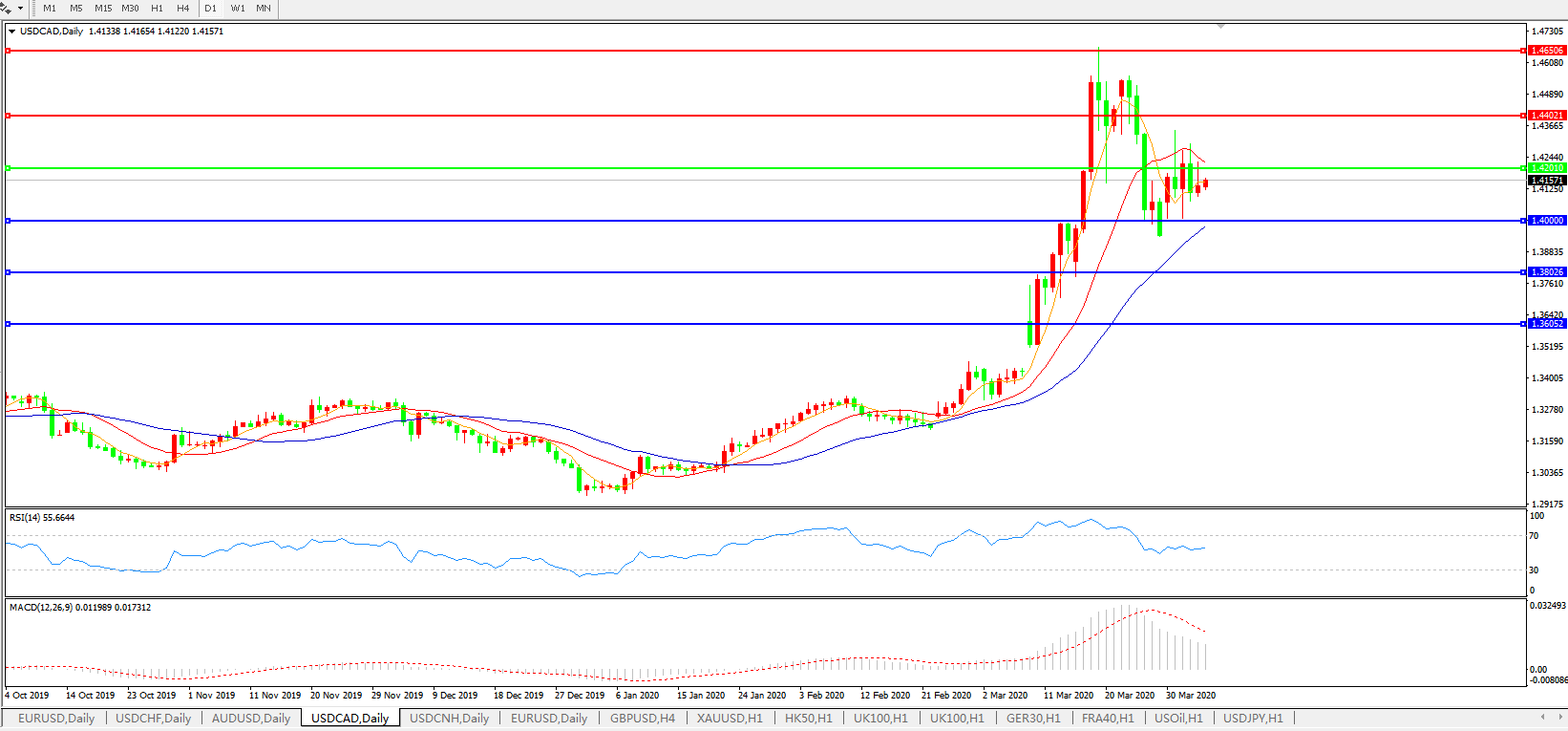 美元兑加元USDCAD 日线图: