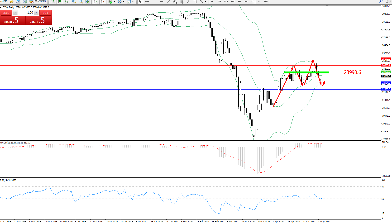 道琼斯指数5月4日(周一)收盘上涨26.10点,涨幅0.11%,报23749.76点。美国股市周一上涨,能源、信息技术和公用事业类股是标普500指数成份股中涨幅最大的板块,由埃克森美孚和雪佛龙领涨。美国的航空股遭受重创,之前沃伦·巴菲特在周末表示,柏克夏已经退出该行业的持股。苹果公司领涨纳斯达克综合指数,本周将有大量上市公司业绩发布。现在经济何时恢复正常还很不确定,鉴于不确定性,随着投资者试图确定确切的时间,市场短期内将会有较大波动。投资者纷纷逃往安全资产,股市看起来很疲软,因为目前还不清楚事态将如何发展,在接下来的几个月里,围绕疫情,可能会出现很多问题。