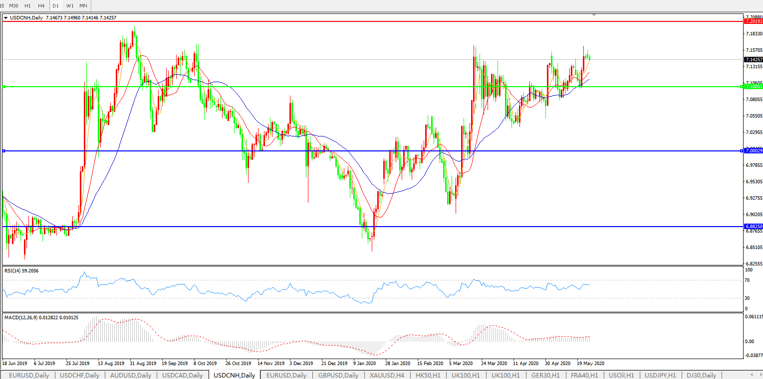 交易策略: 在7.1000之上,看涨,目标价位为7.2000,然后为7.3000。