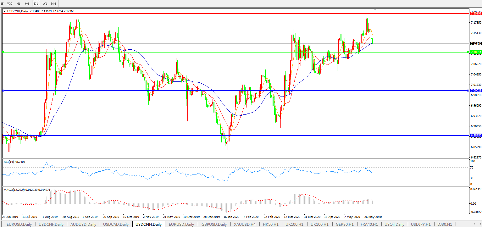 美元兑人民币USDCNH 日线图: