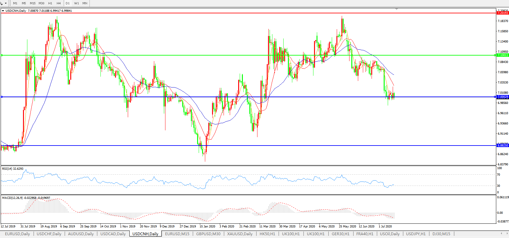 交易策略: 在7.1000之下,看跌,目标价位为7.0000,然后为6.8820。