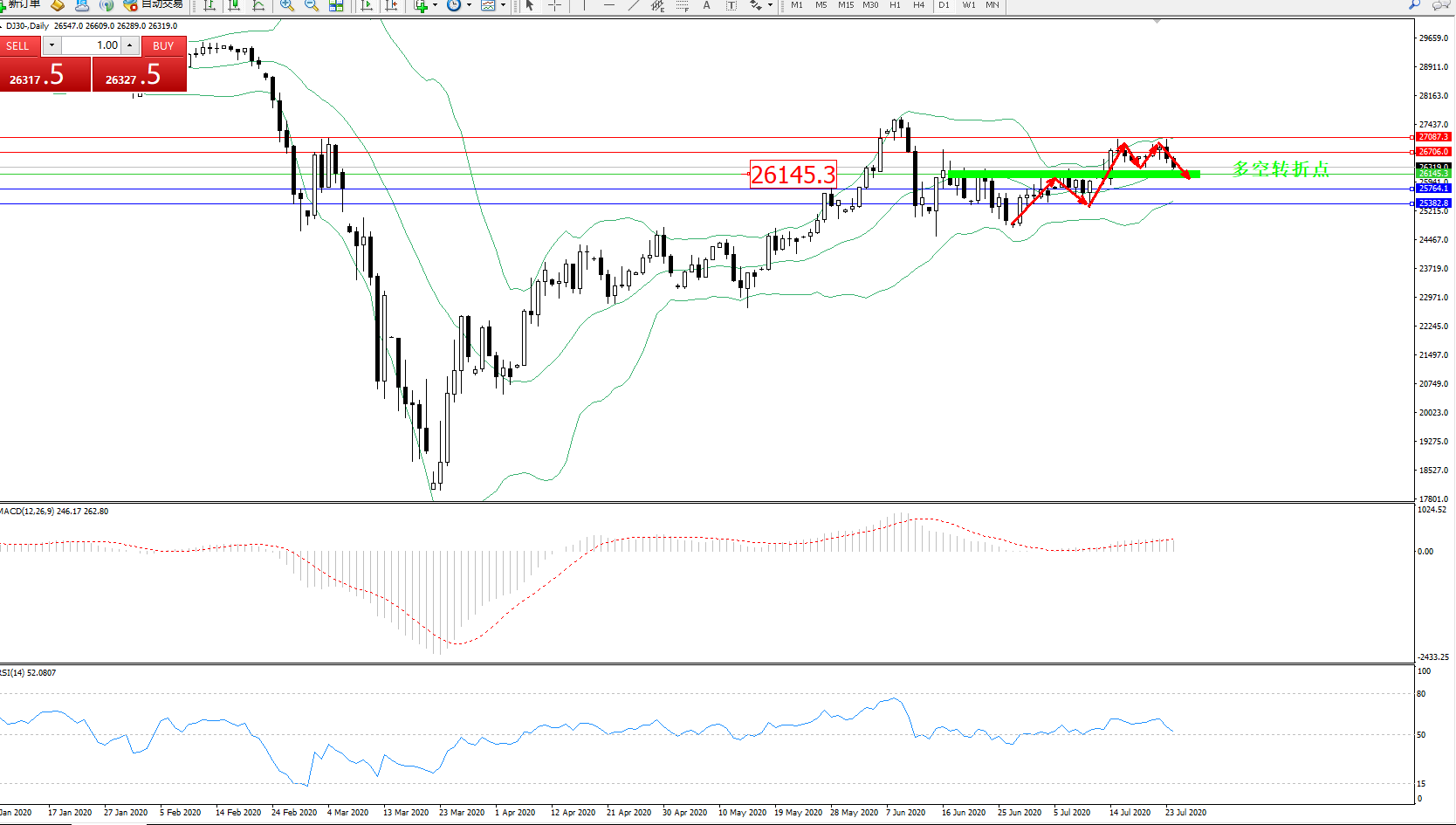 交易策略:26145上方看涨,目标26706、27807