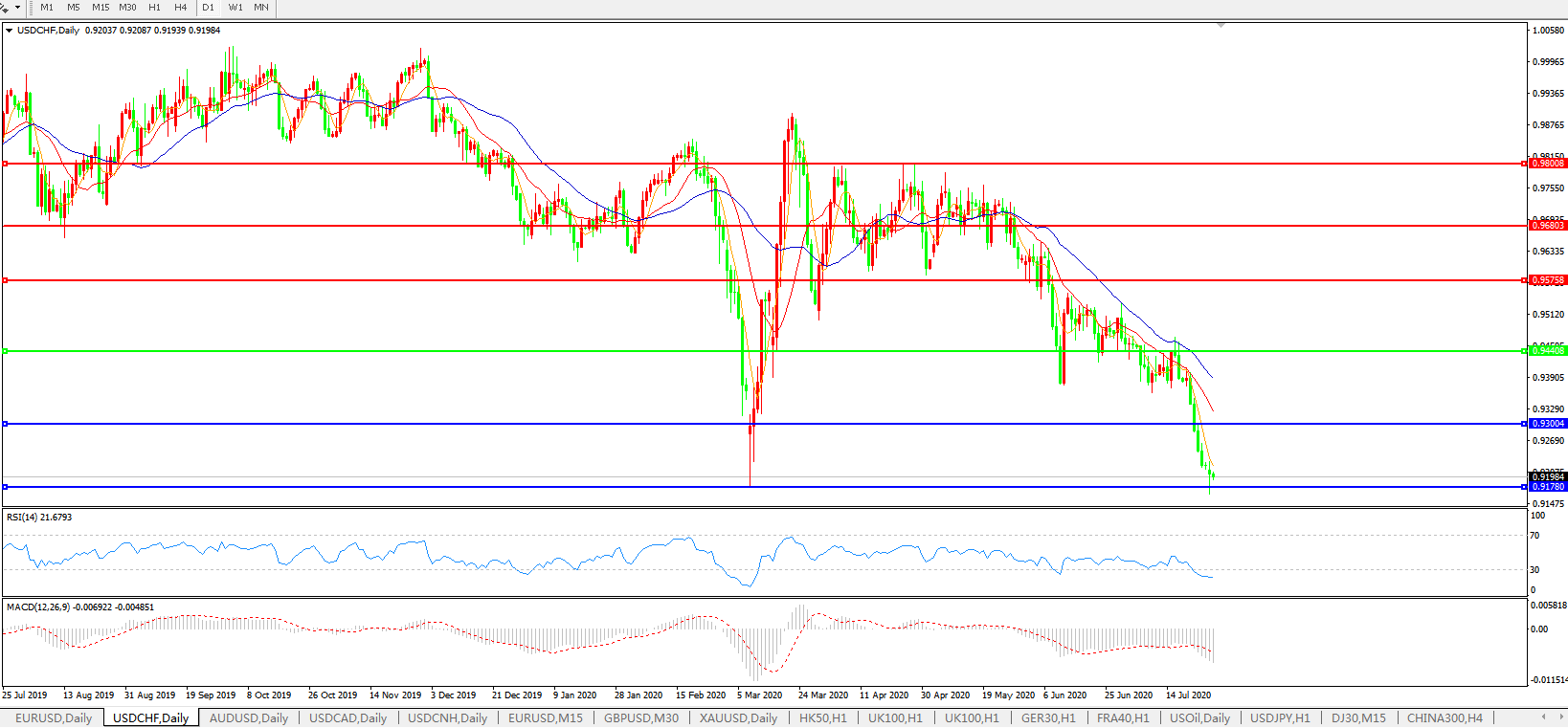 美元兑瑞郎USDCHF    日线图: