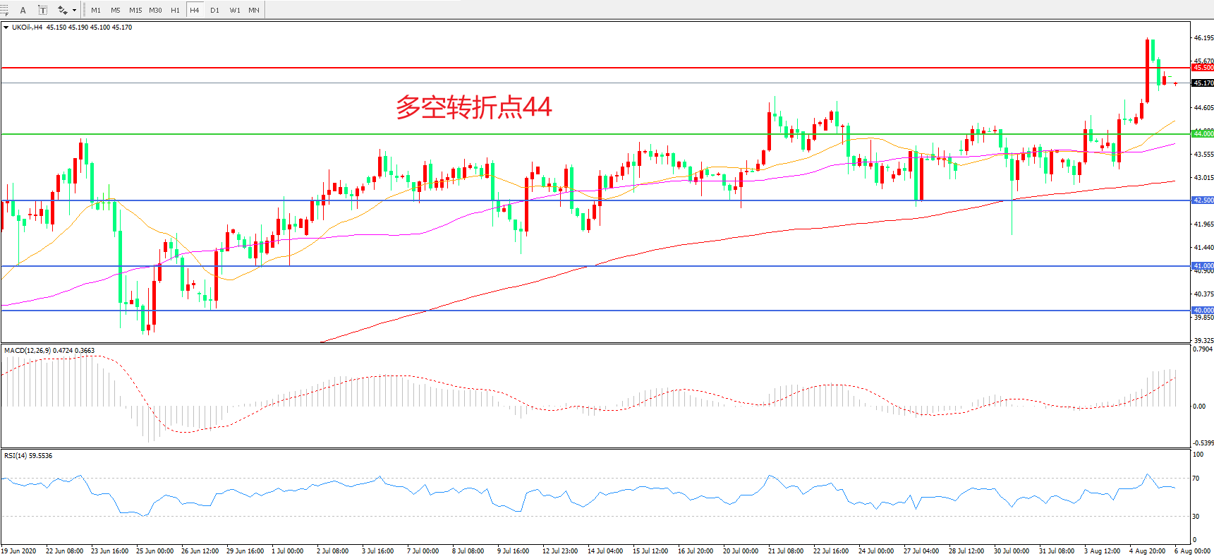 交易策略: 在44.00之上看涨,目标46.00 49.00