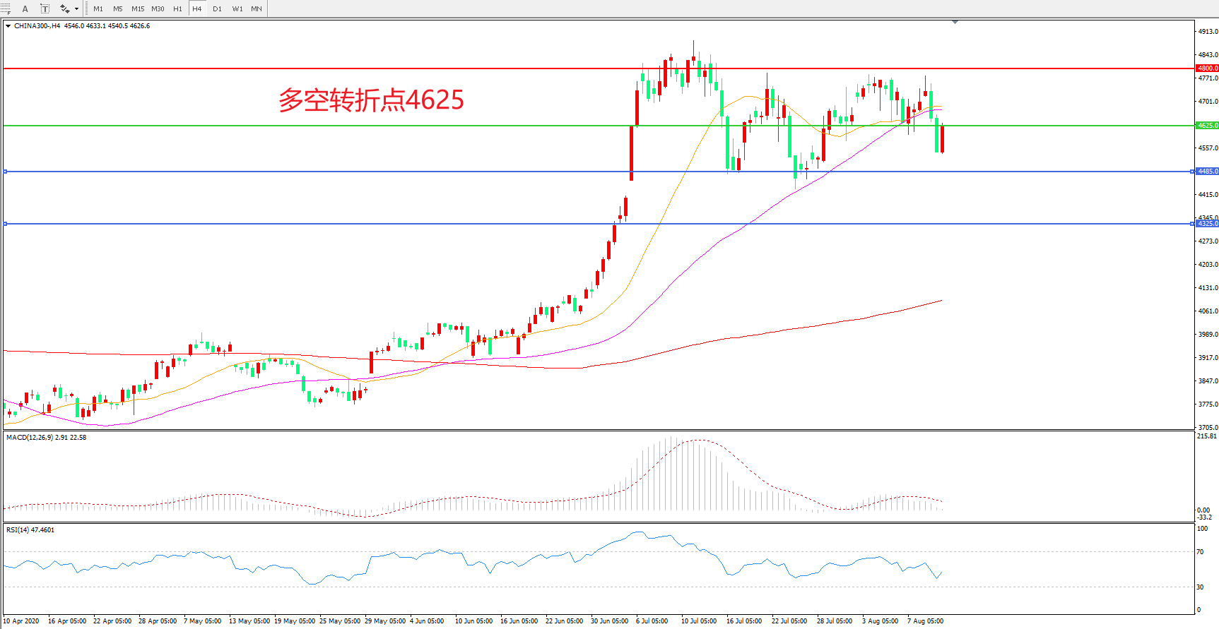 多空转折点:4625.00