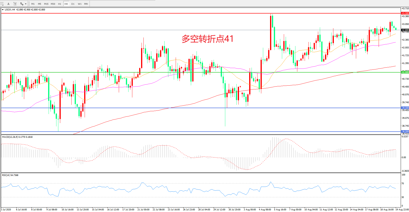 交易策略:在41.00之上看涨,目标43.50 46.00