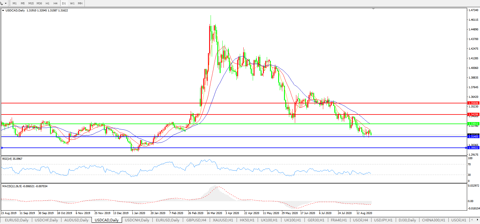 美元兑加元USDCAD    日线图: