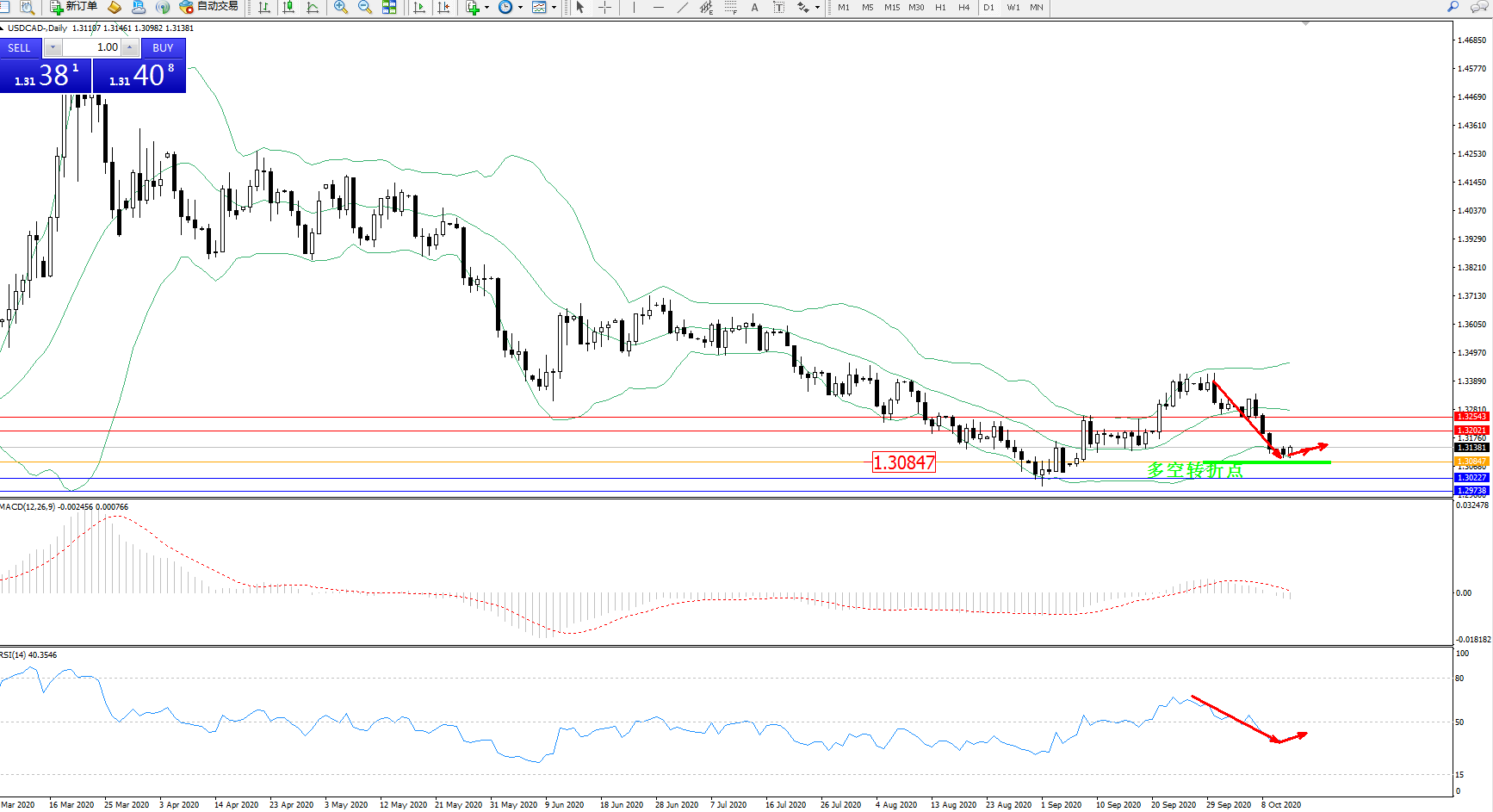 美元兑加元高位弱势震荡下行至1.313859附近整理中,受益于美油有所反弹,加拿大国家银行表示,预计未来十二个月美元兑加元将下跌,加拿大经济仍显示出不可思议的弹性,政府对家庭的救助力度仍然很大,就业反弹较美国更为明显,不仅总就业出现迅速恢复,就业参与率也明显反弹,加拿大经济表现出色,令加拿大与美国短期利差扩大,提振加元,美元兑加元十二个月目标为1.28,但在美国大选前对汇价走势持谨慎态度。