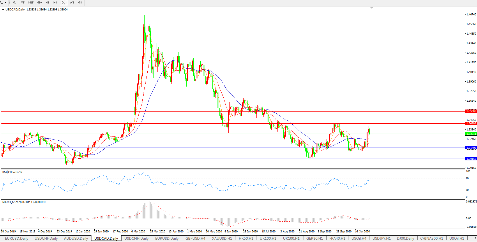 交易策略:在1.3300之上,看涨,目标价位为1.3420、1.3560