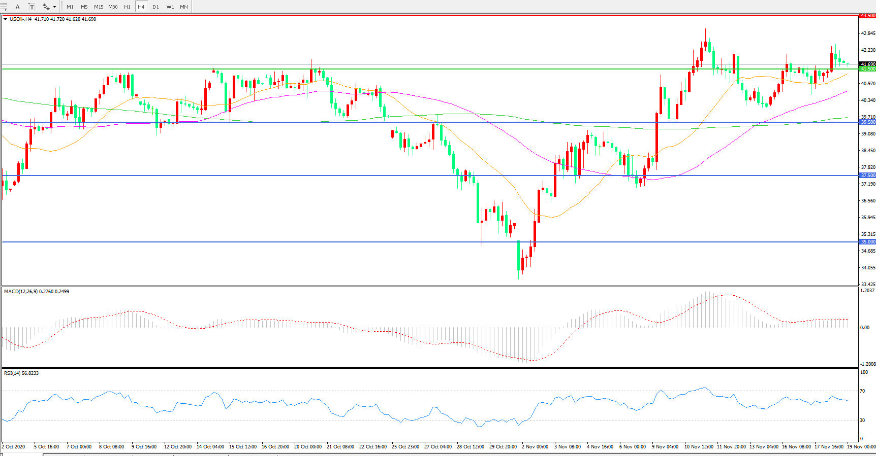 周三(11月18日),新冠疫苗再次传来利好消息!美国辉瑞制药宣布,其疫苗在临床试验的最终数据分析中有效率达到95%,已经满足申请紧急使用授权的要求。如果申请成功,意味着该疫苗可能在今年年底在美国面世。在疫苗利好消息的激励下,国际油价昂首上涨,美国WTI原油连续第三日收涨,报41.78美元/桶。