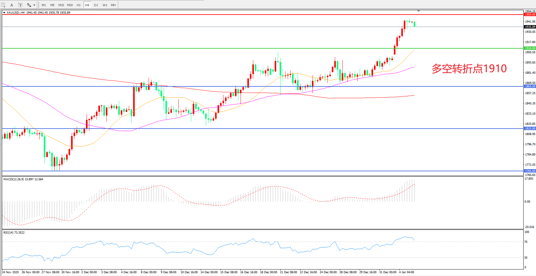 交易策略:在1910.00之上看涨,目标1950.00 1980.00