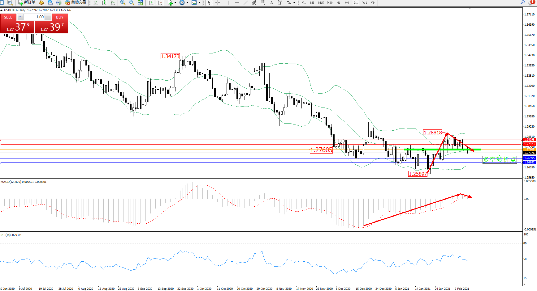 美元兑加元高位整理回撤至1.27377附近整理中,主要产油国削减供应,且美国经济刺激措施有望进一步提振需求。疲弱的美国1月非农就业报告提振了市场对出台进一步刺激措施的希望,能源产品和工业金属受益于投资者风险意愿增强。加拿大最大城市多伦多公共卫生局当地时间2月7日在一份声明中宣布,已经在多伦多市发现了在巴西发现的变异新冠病毒毒株(P.1),该变异病毒比在英国发现的变异新冠病毒毒株(B.1.1.7)和在南非发现的变异新冠病毒毒株(B.1.351)传染性更强。这也是安大略省首次发现这种变异新冠病毒。