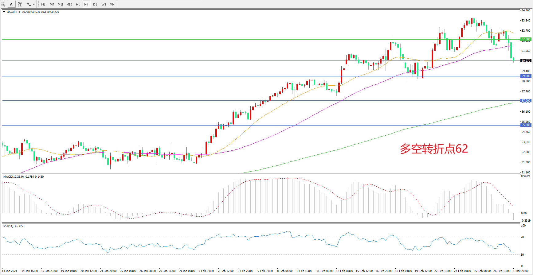 多空转折点:62.00