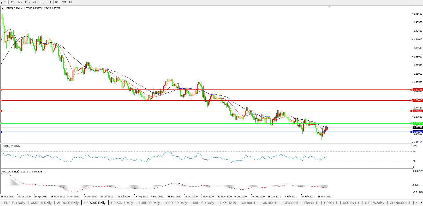 美元兑加元USDCAD 日线图: