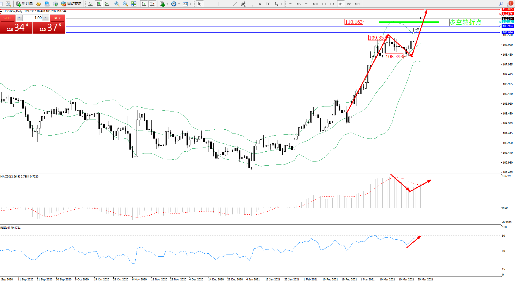 交易策略:110.163上方看涨,目标110.576、110.805