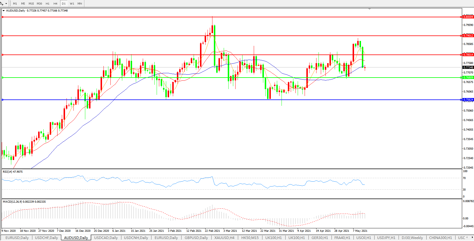 备选策略:0.7680下方看跌,目标0.7560、0.7400