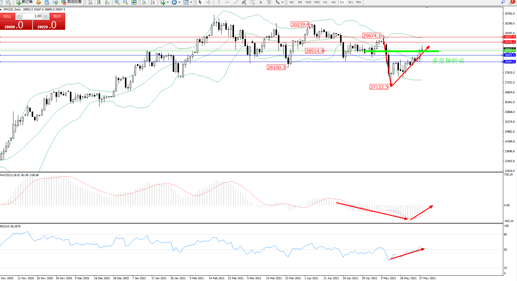 技术点评:空头动力急速下挫至27122位置后得到支撑反转上移,突破中轨进入中上轨区间强势拉升,多头动力有急速向上移动态势,布林带指标呈缓慢收口走势中,关住中轨附近关键节点,MACD指标处于0轴线下方空头区域维持震荡持续整理向上移动,RSI指标处于空头区域维持震荡回升至50均衡线上方徘徊中;