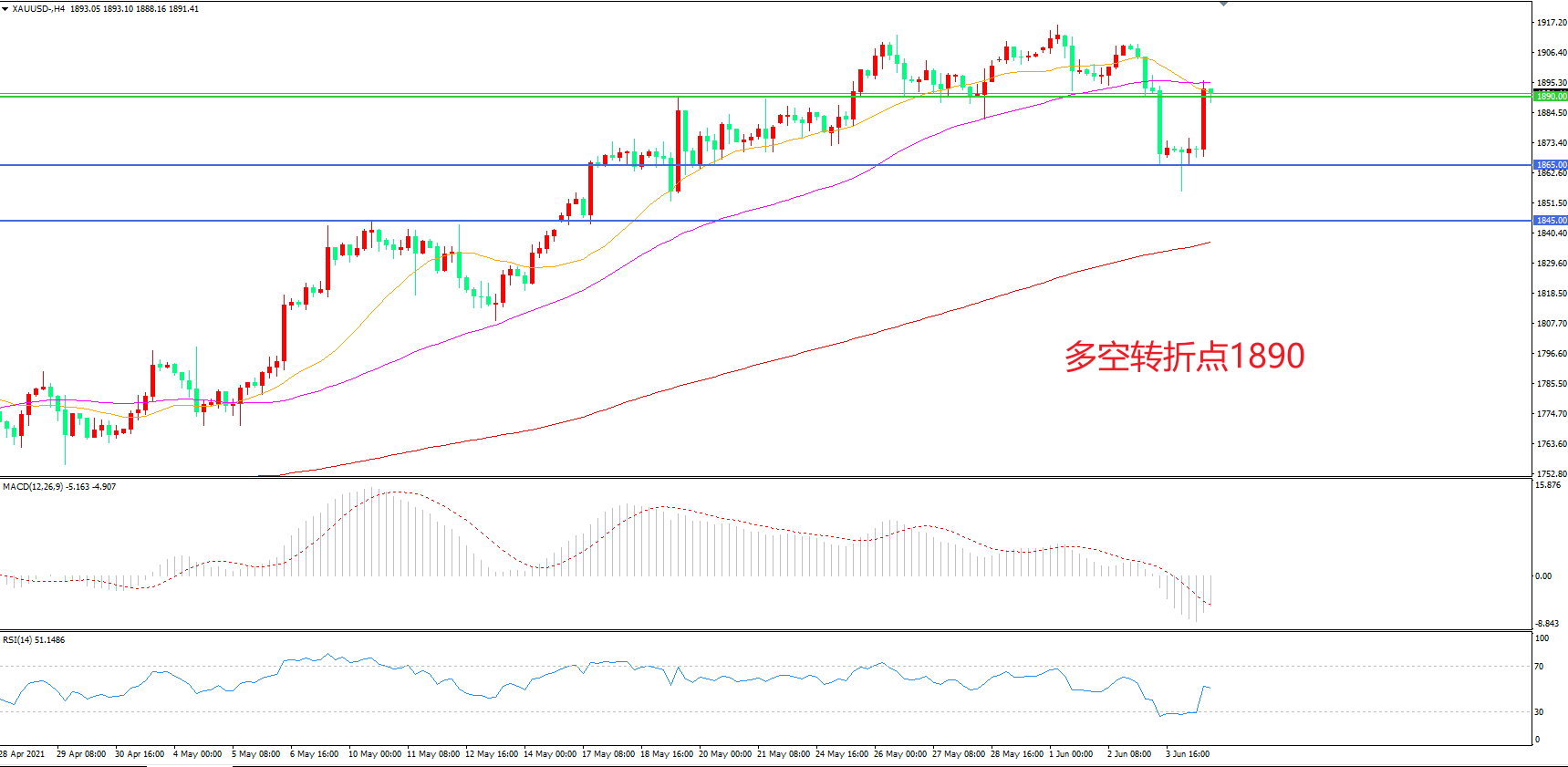 交易策略:在1890.00之上看涨,目标1910.00 1935.00