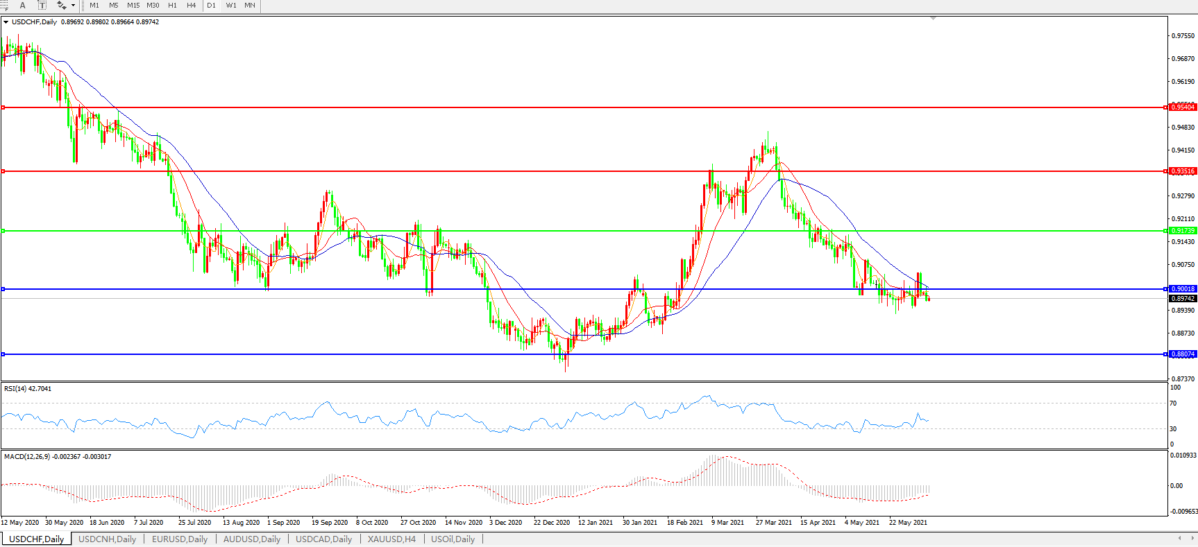 美元兑瑞郎USDCHF    日线图: