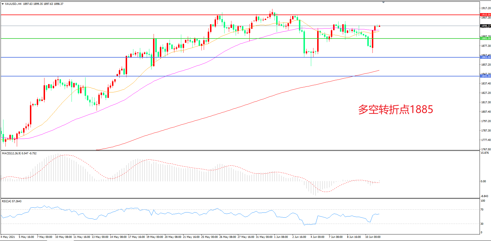 备选策略:在1885.00之下看跌,目标1865.00    1845.00