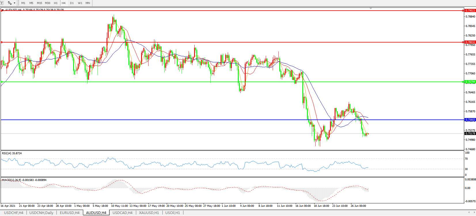 交易策略:0.7680下方看跌,目标0.7560、0.7400
