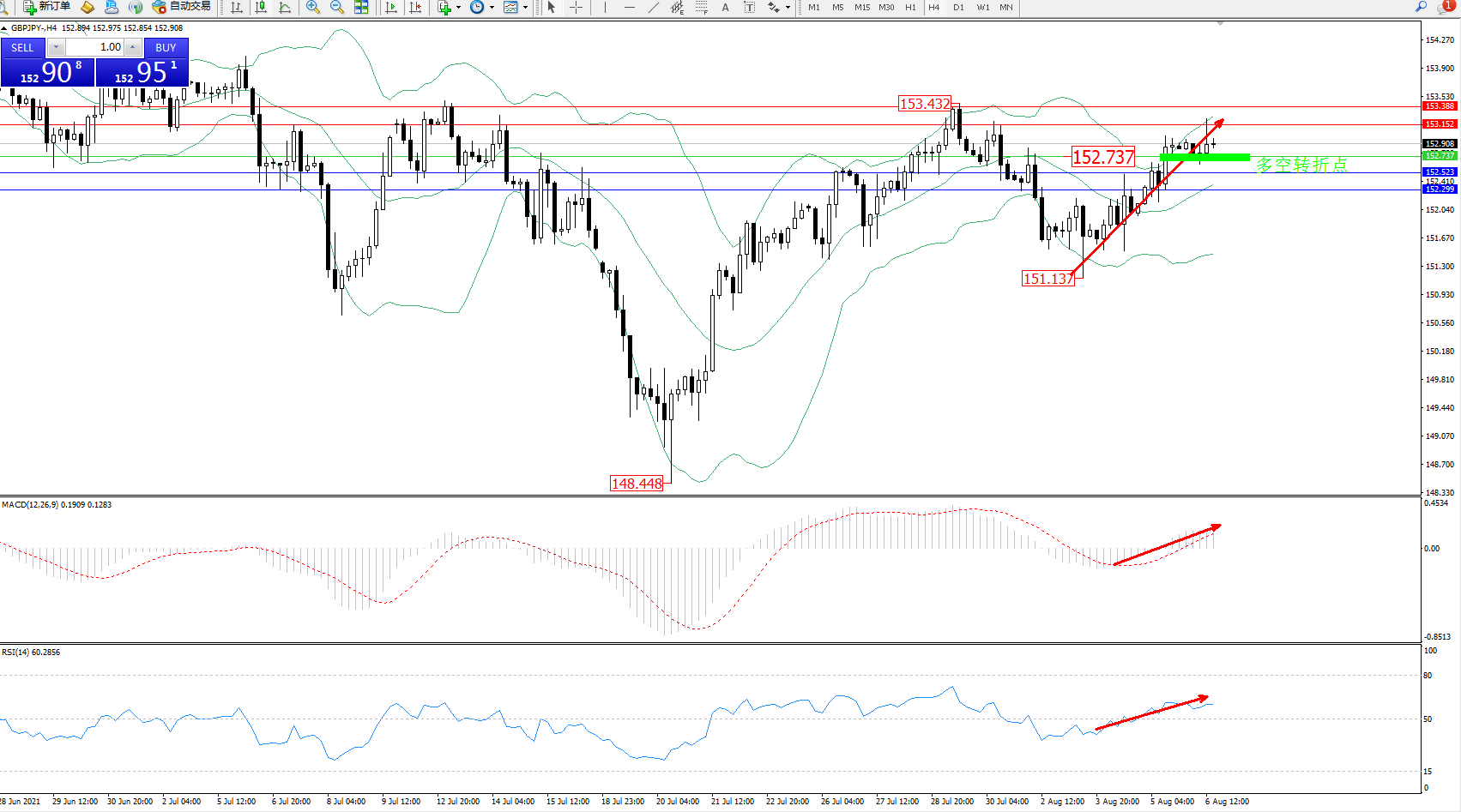 英镑兑日圆持续震荡上扬至152.908附近震荡,英国央行在政策决议中虽然一如预期没有给出明确的政策紧缩计划,但是从其政策措辞,投资者仍解读出了未来终将走向紧缩的大趋势,英国央行的政策措辞字里行间透露出的状况显示其更有可能比欧洲央行更早进入紧缩周期,英国在解除封锁措施后疫情并未进一步恶化的状况,也令投资者略感宽慰。