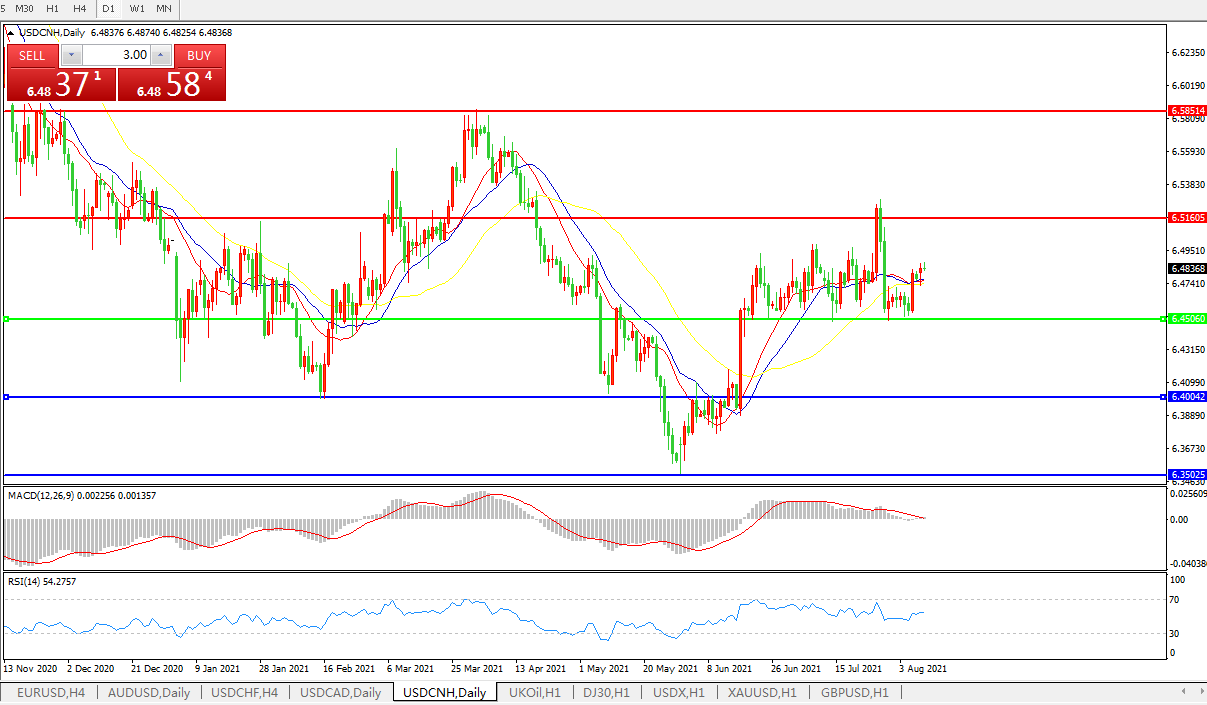 备选策略:在6.4505之下,看跌,目标价位为6.4000,然后为6.3500。