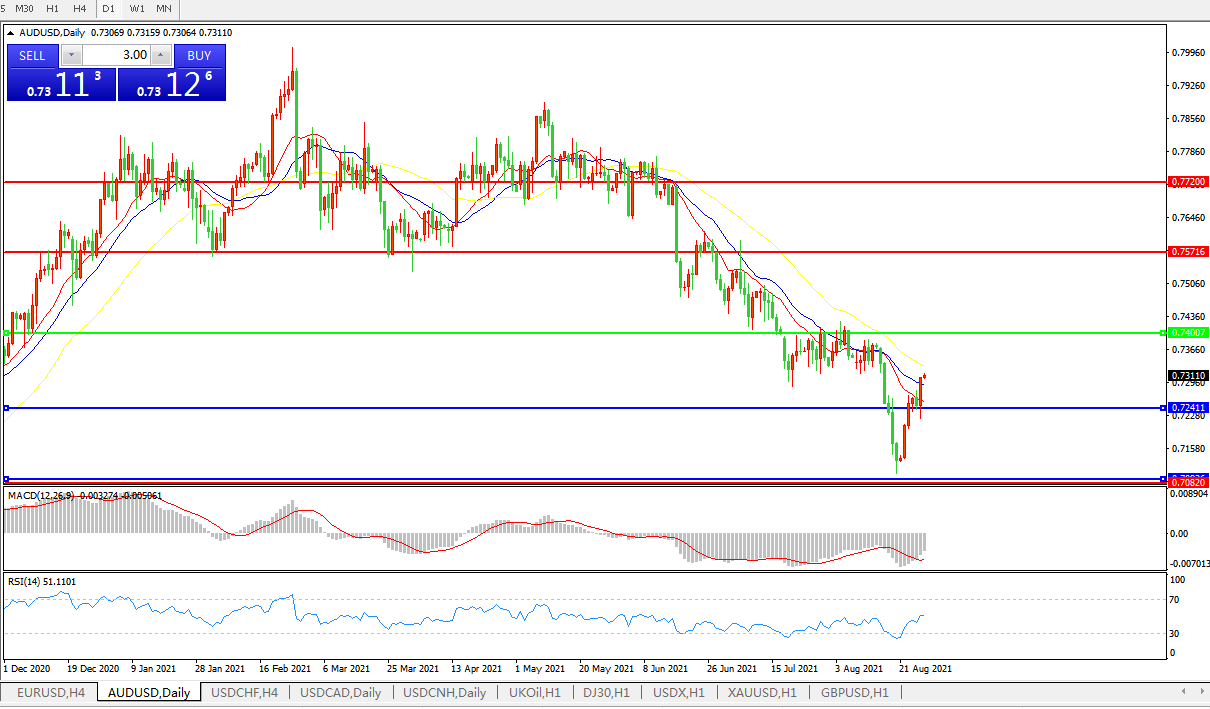 交易策略:0.7400下方看跌,目标0.7240、0.7080