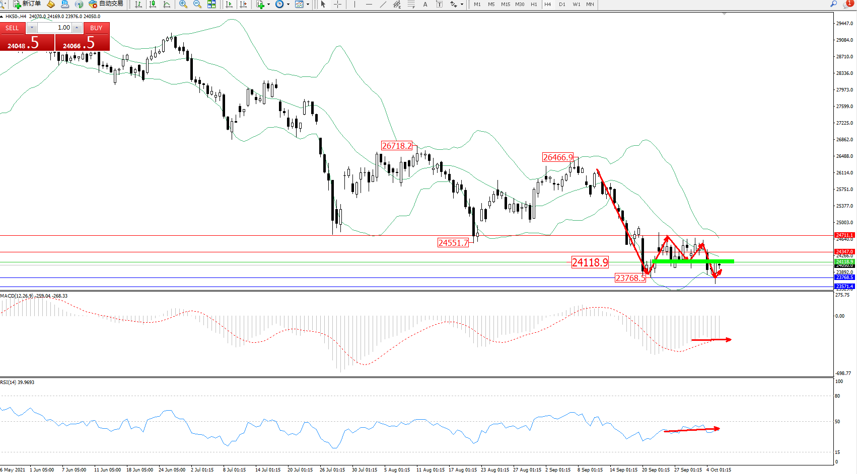 恒指HK50 ——4小时K线图显示: