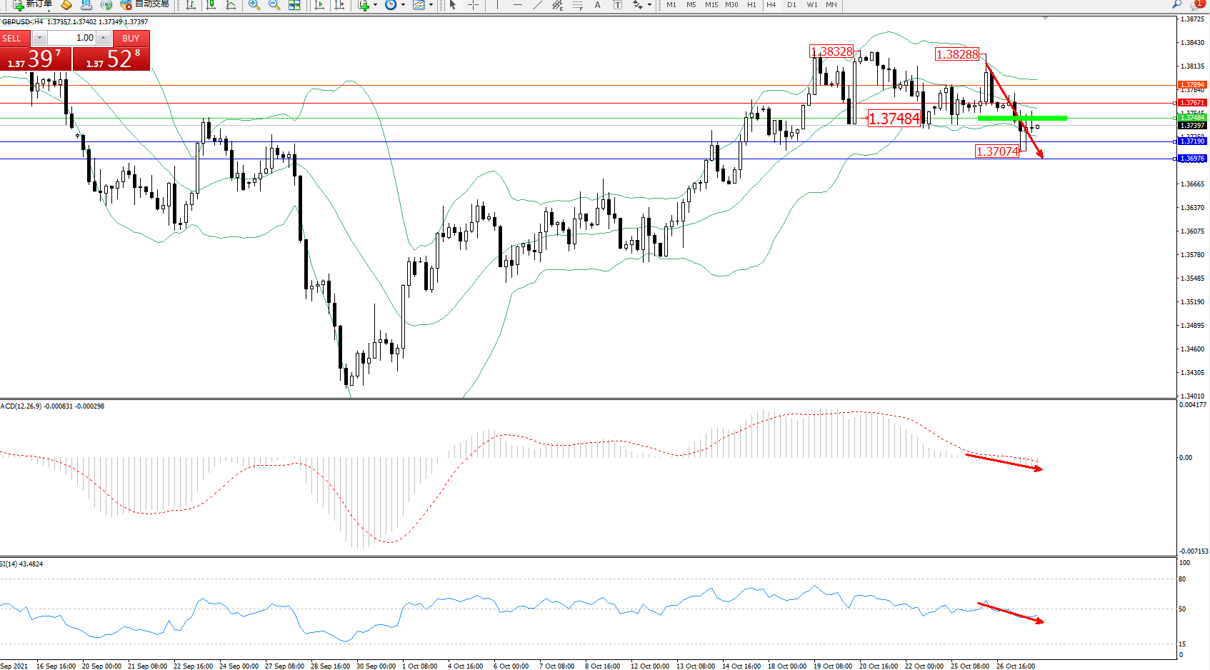 交易策略:1.37484下方看跌,目标1.37190、1.36976