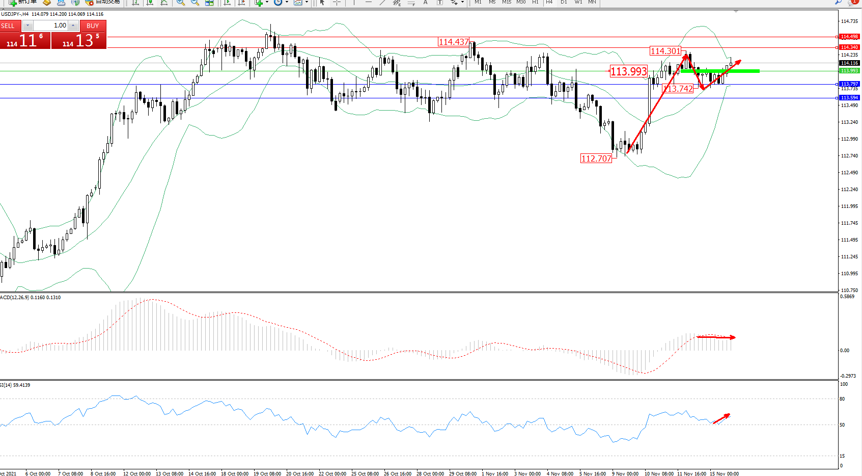 技术点评:低位多头动力强势拉升上扬后开始维持在布林带指标通道中上轨区间持续整理平移,波幅空间逐渐收窄,短期多空动力焦灼,布林带指标呈收口走势后开始平移,MACD指标处于0轴线上方弱势整理平移,RSI指标处于50均衡线上方多头区域持续徘徊中;
