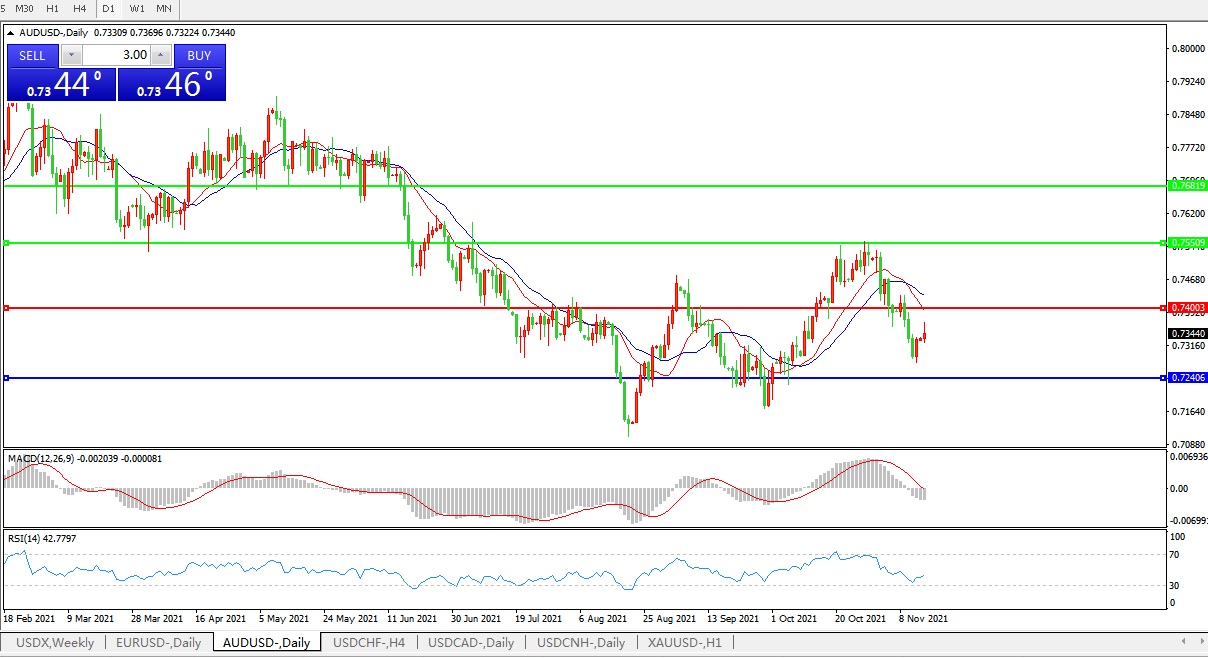交易策略:0.7400下方看跌,目标0.7240、0.7080