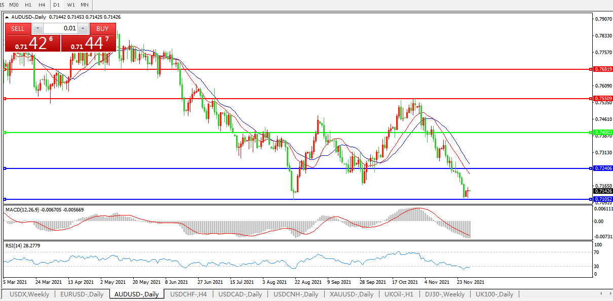 澳元兑美元涨0.28%至0.7143,稍早一度上涨0.5%至0.7160,为11月22日以来最大涨幅;纽兑美元涨0.04%至0.6825。