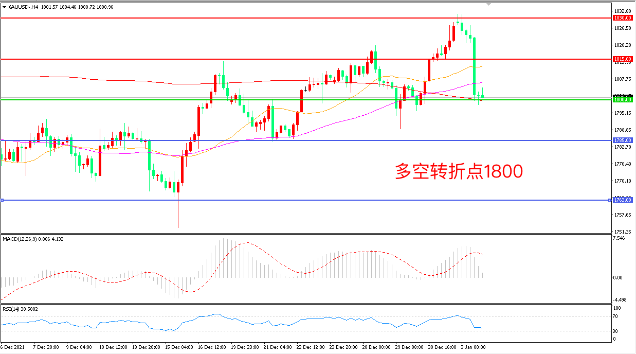 交易策略:在1800.00之上看涨,目标1815..00       1830.00
