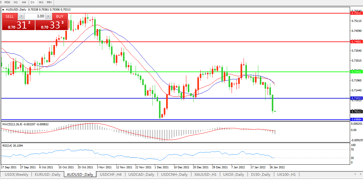美联储鹰派超预期,澳元兑美元大幅走弱