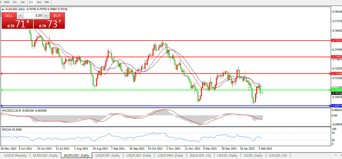 交易策略:0.7100下方看跌,目标0.6950、0.6800
