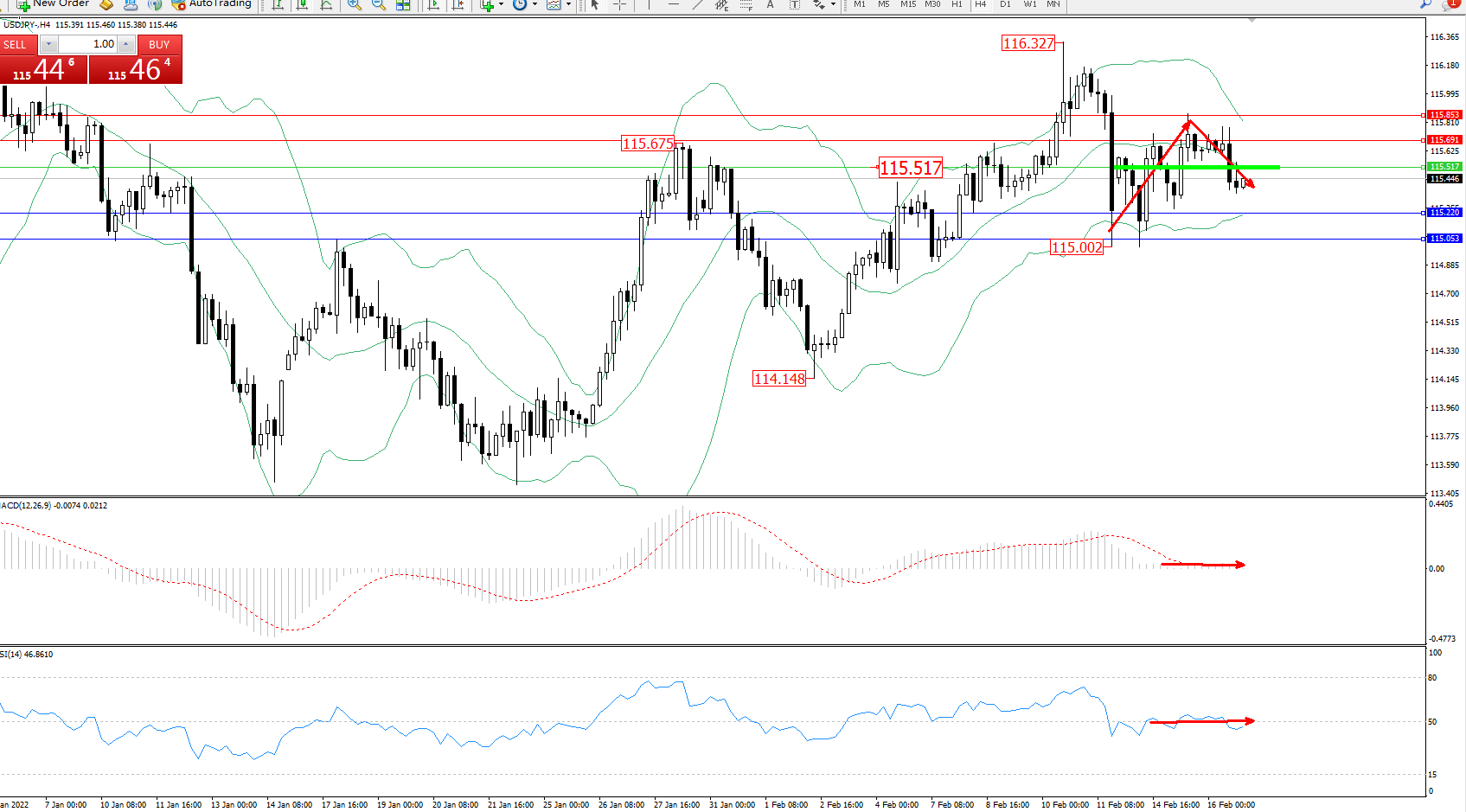 交易策略:115.517下方看跌,目标115.220、115.053